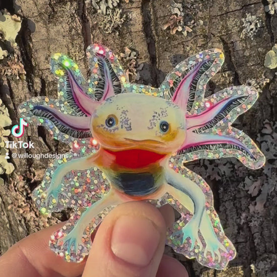 This die cut 3x3" glitter vinyl weatherproof sticker is perfect for sticking wherever you wish-a water bottle, a laptop, your car or notebook! It is a print of one of my original acrylic paintings and is a great way to showcase affordable art on the go!