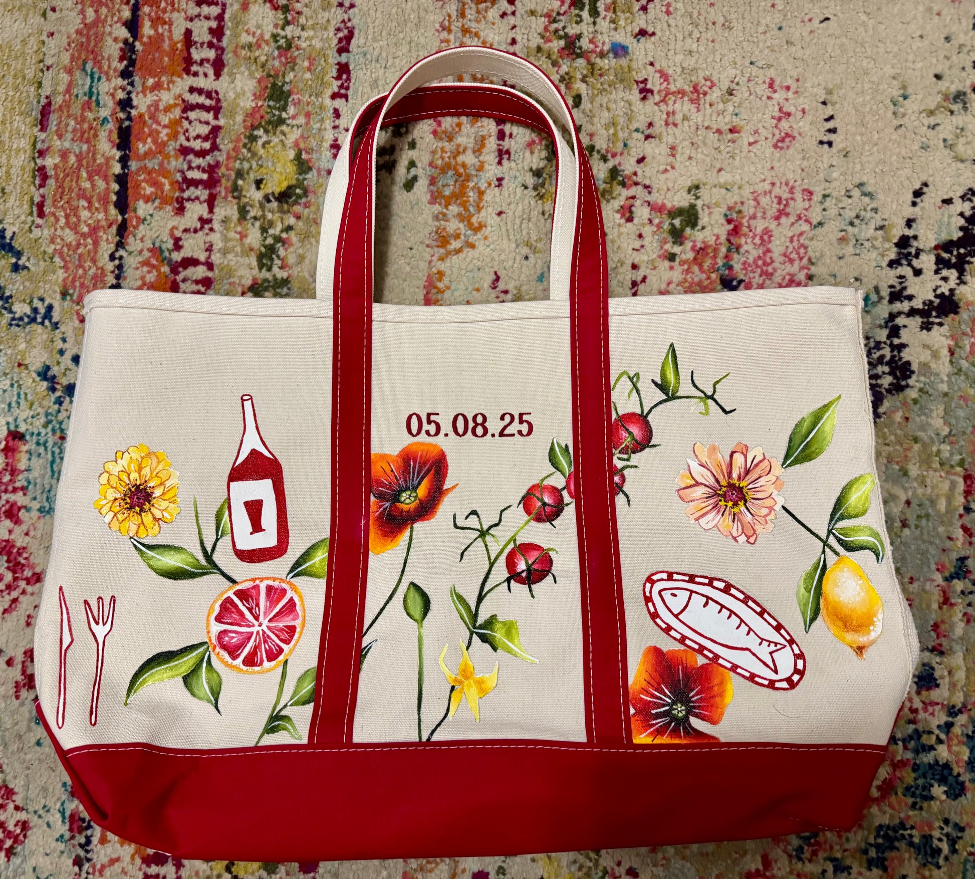 Design a custom, personalized hand painted LLBean Boat and Tote Bag. See listing photos for ideas and inspiration, but I can work with you to create a bag that is personalized for the recipient. These totes make amazing gifts for the holidays, teachers, weddings, or for someone special.